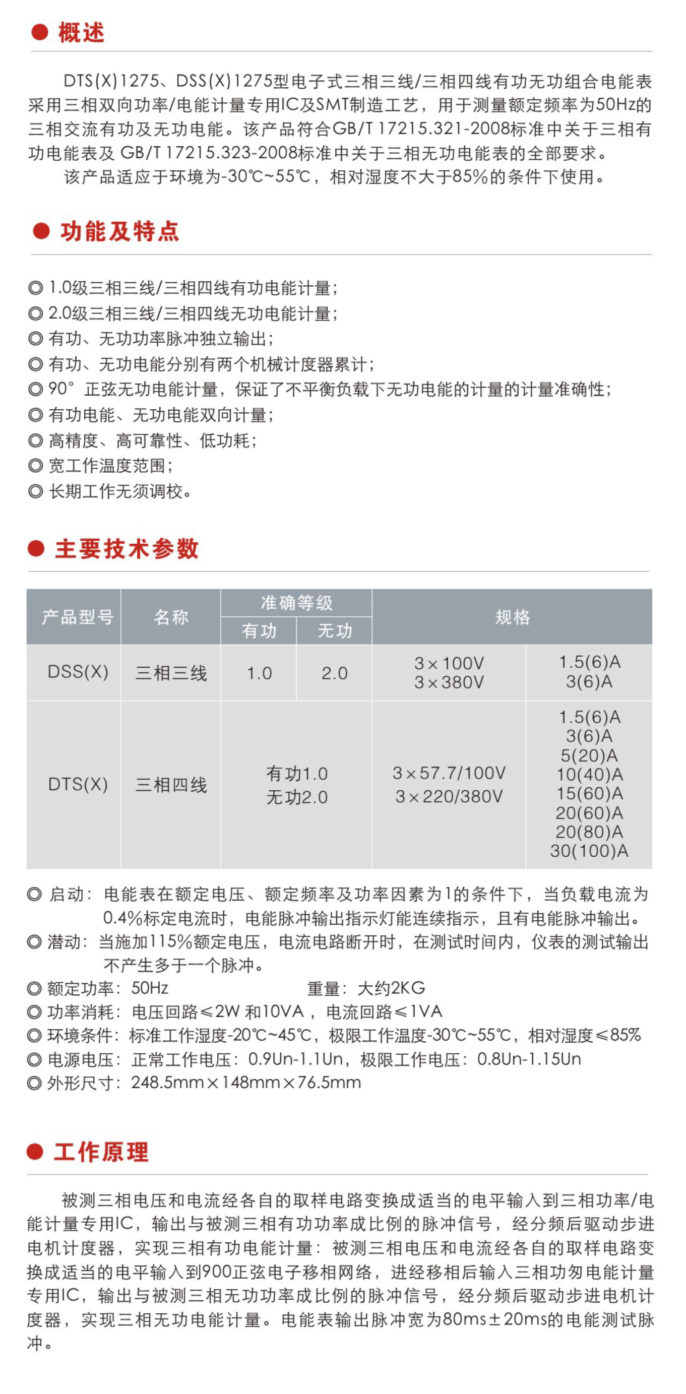 DTS(X)1275型三相四線普通有功無功組合電能表